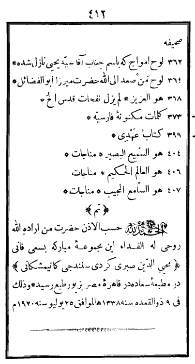 ٤١٢ :الصفحات Bahá'í Publishing Trust - Wilmette, Illinois 1978 :الناشر حضرة بهاءالله :صاحب الاثر