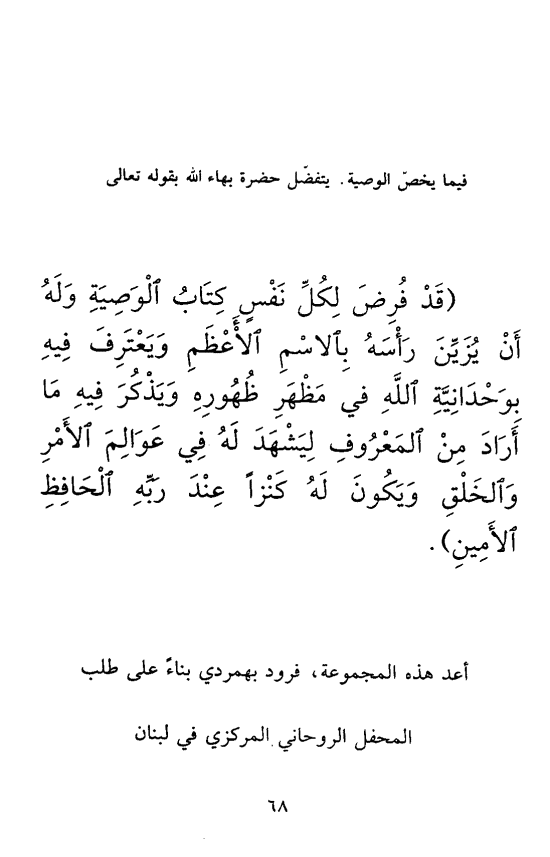 ٦٨ :الصفحات منشورات دار النشر البهائية في البرازيل :الناشر مُصنفات نصوص كتابية :صاحب الاثر