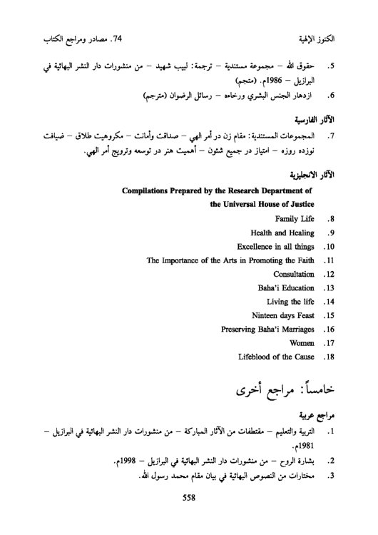 ٥٥٩ :الصفحات دار النشر البهائية في البرازيل :الناشر مُصنفات نصوص كتابية :صاحب الاثر